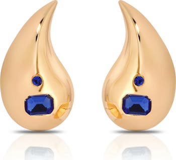 Accessorize in bold, contemporary style with these perfectly polished teardrop statement earrings lit up with faceted crystals.