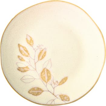 • Eucalyptus Ivory Ceramic Appetizer Plates are made of stoneware with a hand applied color and reactive glaze. Stoneware organic body with deboss wax resist design, hand applied color and reactive glaze