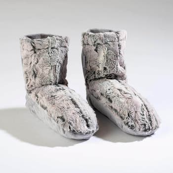 Warm & revive sore aching feet with moist, fragrant, Eucalyptus heat (with a touch of Lavender). Use on their own or indulge further by liberally applying Eucalyptus Lotion to your feet, insert first into a plastic bag and then into our warm Booties. A reviving spa treatment at home! Heat in the microwave or tumble dryer. The ultra-soft covers can be removed and thrown into the wash. One size fits all up to ladies size 10.
