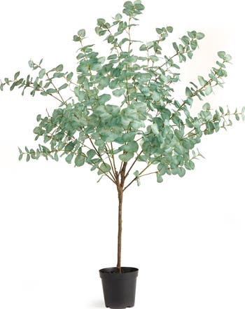 - With a soft blue-green signature leaf and wispy branches, this faux Eucalyptus Tree Drop-in is ultra-realistic. With an easy to mold wire frame, it makes a stunning addition to the wide open space. Interior use only. Dust with dry cloth. Avoid moisture and direct sunlight. Pot: 7 x 7 x 5.5;36 x 36 x 49 Pot: 7 x 7 x 5.5;36 x 36 x 49