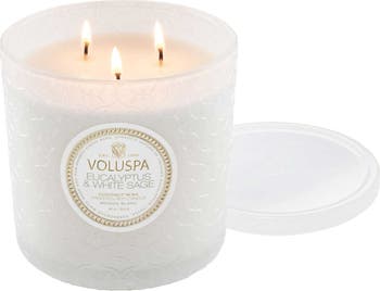 Fragrance story: Breathe in and out. Rejuvenate your body and soul with the hypnotic vapors of Eucalyptus & White Sage, giving way to mystical soothing properties. Let worries fade away with this aromatic sun salutation. Notes of crushed eucalyptus leaves, cardamom, herbaceous white sage and sun-warmed hinoki bark create a kinship of peace and vitality, illuminating feelings of renewal. Make Voluspa's Eucalyptus & White Sage part of your daily routine. Namaste.