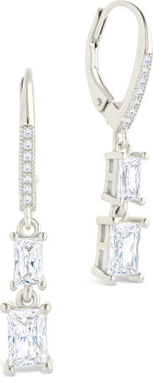 Emerald-cut cubic zirconia anchor these pavé hoops in dangling shine that always catches light.