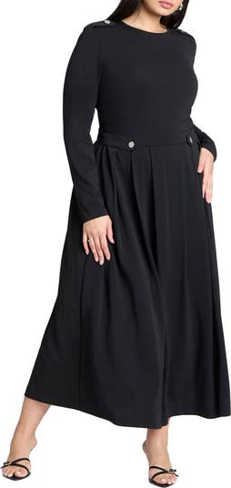 Make a refined statement in this gently pleated midi dress with epaulette details at the shoulders and waist. A fitted bodice and soft stretch jersey blend elegance with comfort.