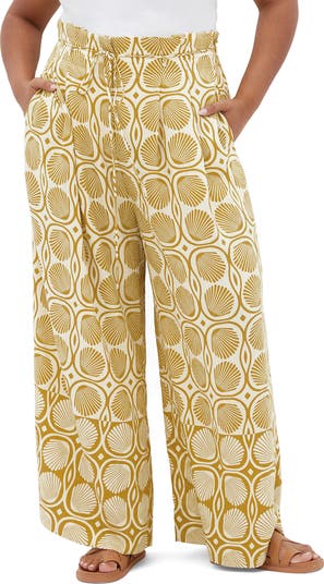 Play it loose and lively in these wide-leg paperbag pants bursting with retro flair on a high-waist silhouette.