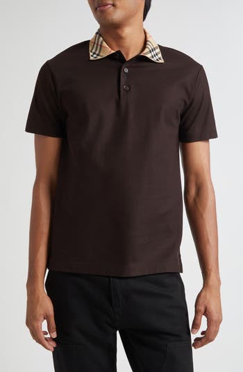 Burberry's iconic check patterns the collar of this slim-fit polo cut from breathable cotton piqué and accented with mother-of-pearl buttons for a refined finishing touch.