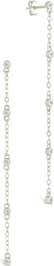 Bezel-set cubic zirconia station dainty chains to bring delicate shine to these movement-inclined drop earrings.