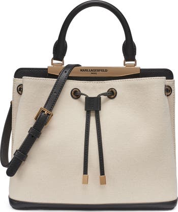 Effortlessly chic, the Karl Lagerfeld Paris Evelina Bucket Bag combines timeless design with modern versatility. Crafted from genuine leather, it features a double top handle, detachable crossbody strap, and magnetic closure. Perfect as a tote or shoulder bag for workdays, brunches, or evening outings.