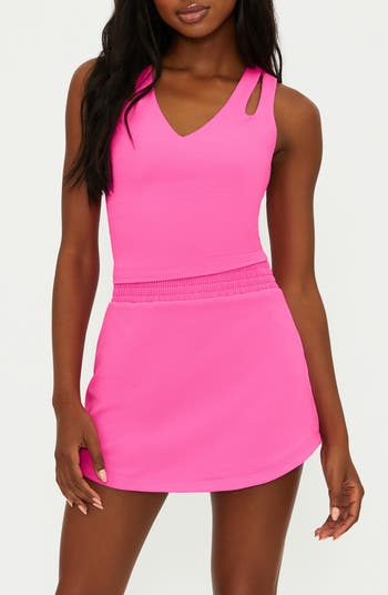 Work out or chill out in this cropped tank fashioned from a supportive textured fabric with flirty cutouts at the straps.