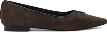 A modern take on the classic ballet flat, this style features a low-cut sculpted vamp. Piping outlines the silhouette for subtle definition, while a pointed toe and lightly padded footbed bring comfort and polish to your everyday rotation.
