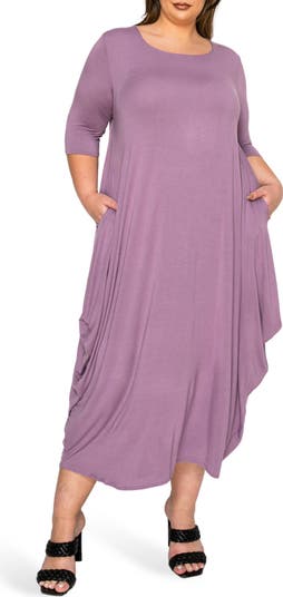 Simple practicality is rarely so elegant as this midi cut with a scooped neckline, a tapered balloon hem and handy side-seam pockets from lightweight, drape-right jersey.