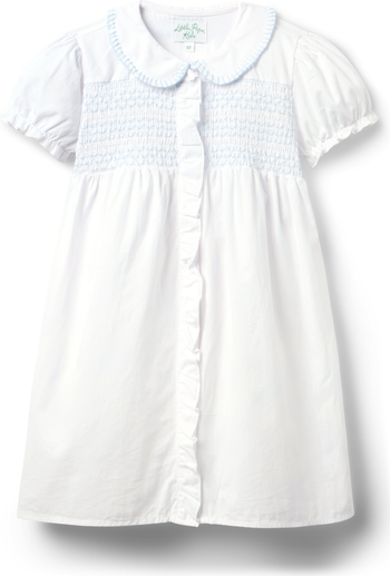 The Evelyn Dress is a timeless favorite with a fresh twist. Designed in a lightweight woven fabric, it features a classic silhouette, soft hue, and delicate detailing that make it feel effortlessly special.