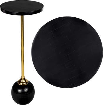 - This cream resin stand has a mosaic top in black tiles, and the metal support post has a glossy gold finish