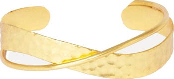 Add shine to your bracelet stack with this chic and minimal gold cuff bracelet. We love the hand-hammered texture and beautiful fluid shape of this OH favourite. Adjustable for a perfect fit to any stack.