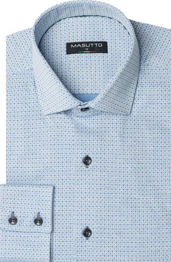 MASUTTO Evens Dot Print Stretch Cotton Button-Up Shirt, Main, color, Blue