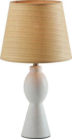 Illuminate your favorite cozy nook with the rustic charm of this lamp featuring a light-diffusing, woven-rattan shade set atop the soft curves of the ceramic base.