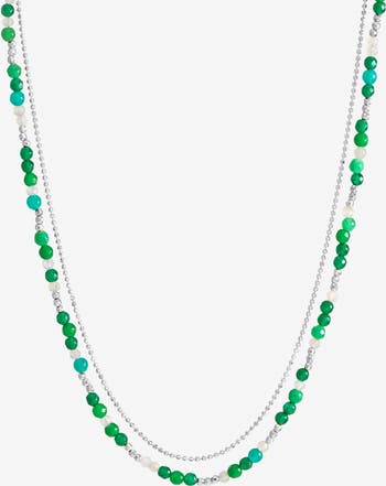 Our Evergreen Orissa necklace is the perfect addition to your gemstone collection. The striking colour combination of amazonite, green agate, and moonstone creates a truly eye-catching piece of jewellery. The necklace is complete with a sterling silver chain, catch and beads. Available in Sterling Silver and Vermeil Gold.