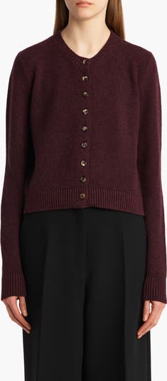 Dense Italian cashmere furthers the luxe look and feel of this shrunken crewneck cardigan traced with tortoiseshell-patterned buttons. Since its founding in 2016, this New York label has made its mark with fashion insiders, thanks in part to Catherine Holstein's coveted knits.