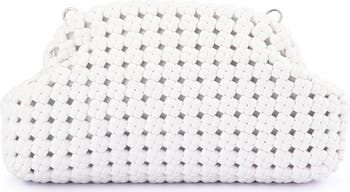 Finely handwoven faux leather brings intriguing texture to a brunch-ready frame clutch suspended from an optional chain strap for hands-free wear.