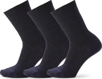Keep those feet cozy in these cable-stitch crew socks crafted from a durable merino wool blend.