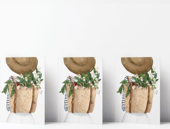 This 3-pack of Everyday greeting cards is elegantly illustrated by artist Ingrid Ramus, founder and owner of the Ramus & Co brand. Front artwork features flowers in a backpack. The cards are blank inside. All greeting cards are made in the USA on heavyweight uncoated and locally-manufactured card stock. Each card is individually wrapped in TUV Austria certified-compostable PLA sleeves. Each card is accompanied by a hand-embossed envelope made with heavyweight 95lb paper and a peel-and-stick flap - no licking envelopes here! All Ramus & Co. greeting cards are printed on FSC and SFI certified paper sourced from a regional mill that harnesses 66% of its energy from on-site sustainable sources, such as emission-free hydroelectricity and biomass co-generation from wood waste. Additionally, our greeting cards are thoughtfully packaged in bags made from certified compostable PLA material. Husband-and-wife team Calvin and Ingrid Ramus founded Ramus & Company in 2019, in New England, USA. Ingrid, the creative designer behind the brand, originates from Mexico, where she cultivated her skills in fashion and textile design. Drawing from her unique and inquisitive perspective on preppy style, Ingrid prolifically designs whimsical yet classic stationery and lifestyle items.