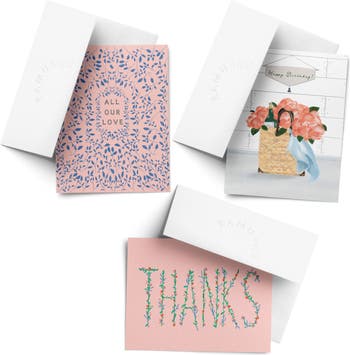 - Card 3 artwork: Floral "Thanks," Blank inside