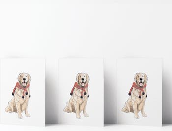 This 3-pack of Everyday greeting cards is elegantly illustrated by artist Ingrid Ramus, founder and owner of the Ramus & Co brand. Front artwork features a golden retriever with a scarf. The cards are blank inside. All greeting cards are made in the USA on heavyweight uncoated and locally-manufactured card stock. Each card is individually wrapped in TUV Austria certified-compostable PLA sleeves. Each card is accompanied by a hand-embossed envelope made with heavyweight 95lb paper and a peel-and-stick flap - no licking envelopes here! All Ramus & Co. greeting cards are printed on FSC and SFI certified paper sourced from a regional mill that harnesses 66% of its energy from on-site sustainable sources, such as emission-free hydroelectricity and biomass co-generation from wood waste. Additionally, our greeting cards are thoughtfully packaged in bags made from certified compostable PLA material. Husband-and-wife team Calvin and Ingrid Ramus founded Ramus & Company in 2019, in New England, USA. Ingrid, the creative designer behind the brand, originates from Mexico, where she cultivated her skills in fashion and textile design. Drawing from her unique and inquisitive perspective on preppy style, Ingrid prolifically designs whimsical yet classic stationery and lifestyle items.