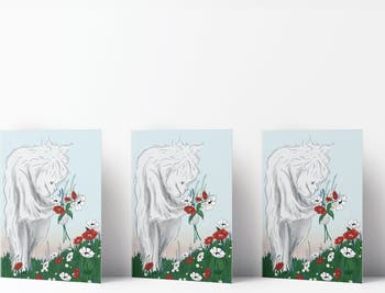This 3-pack of Everyday greeting cards is elegantly illustrated by artist Ingrid Ramus, founder and owner of the Ramus & Co brand. Front artwork features a yeti with red and white flowers. The cards are blank inside. All greeting cards are made in the USA on heavyweight uncoated and locally-manufactured card stock. Each card is individually wrapped in TUV Austria certified-compostable PLA sleeves. Each card is accompanied by a hand-embossed envelope made with heavyweight 95lb paper and a peel-and-stick flap - no licking envelopes here! All Ramus & Co. greeting cards are printed on FSC and SFI certified paper sourced from a regional mill that harnesses 66% of its energy from on-site sustainable sources, such as emission-free hydroelectricity and biomass co-generation from wood waste. Additionally, our greeting cards are thoughtfully packaged in bags made from certified compostable PLA material. Husband-and-wife team Calvin and Ingrid Ramus founded Ramus & Company in 2019, in New England, USA. Ingrid, the creative designer behind the brand, originates from Mexico, where she cultivated her skills in fashion and textile design. Drawing from her unique and inquisitive perspective on preppy style, Ingrid prolifically designs whimsical yet classic stationery and lifestyle items.