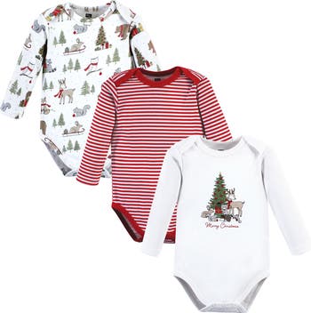 Hudson Baby long-sleeve bodysuits are an essential part of baby's wardrobe. Our bodysuits feature adorable prints, embroideries, stripes and solids and provide a comfortable base layer that's great for pairing with pants, shorts, or even wearing under outfits. Our bodysuits are comfortable and cozy for all-day, everyday wear for your little one. Hudson Baby offers the widest assortment in Christmas apparel, Christmas outfits and sweaters, Christmas pajamas, Christmas blankets and throw blankets, and Christmas socks. Our vast product assortment for babies, toddlers and kids make for great stocking stuffers for the whole family.