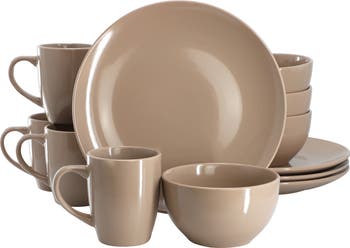 The Gibson Home Everyday Plus 12 Piece Stoneware Dinnerware Set in Mocha Brown is the perfect blend of style and functionality for everyday dining. Designed to serve four, this set includes four 10.6-inch dinner plates, four 5.2-inch cereal bowls, and four 12oz mugs-making it ideal for family meals, casual gatherings, or daily use. Crafted from durable ceramic with a classic round shape, each piece features a smooth, glossy finish and a soft mocha color that complements a wide range of table settings. The simple, elegant design offers a timeless look that works well in both modern and traditional kitchens. Best of all, the entire set is dishwasher safe for easy cleanup and microwave safe for added convenience. Whether you're setting the table for breakfast, lunch, or dinner, the Gibson Home Everyday Plus dinnerware set brings everyday charm and reliable performance to your home.