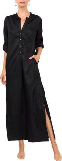 Lounge languidly (you've earned it) in this cotton caftan featuring a deep neckline and an airy slit hem.