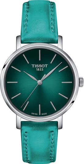 A clean stick index dial and sleek leather strap revitalize this traditional Swiss-made timepiece that exemplifies Tissot's time-honored craftsmanship.