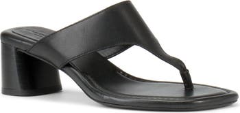 This modern flip-flop is perched on a slanted block heel and designed with a padded and stitched insole for extra comfort.