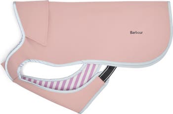 Made for both comfort and style, this chic waterproof dog coat lined in striped jersey features reflective binding and a quick-release waist strap.