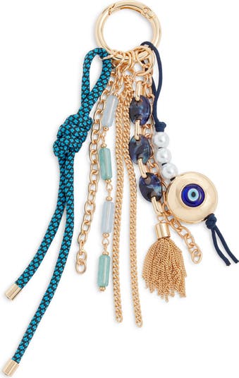 Add a pop of personality to your bag with this whimsical clip-on charm strung with chains, cords, lustrous faux pearls and colorful beads. Bonus: This personalized touch makes your belongings easy to spot in a crowd.
