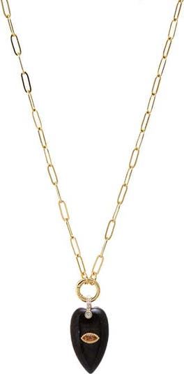 BY ADINA EDEN Evil Eye Elongated Heart Natural Stone & Clicker Toggle Necklace, Main, color, Onyx - 16 Inch