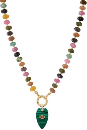 The Evil Eye Elongated Heart Pendant Beaded Clicker Necklace by Adina Eden is a polished Necklace with serious sparkle appeal. Create your perfect combo with this women's fashion necklace, offered in Jade Green, Rose Quartz, Turquoise, Malachite, Onyx, Tiger Eye and Lilac. When comfort meets confidence, it transitions with ease while keeping your look smooth, cohesive, and fresh all day. Blend this gold plated necklace layered with finds in the Chain Necklaces collection to make your everyday styling effortless. It's made for today's trends and tomorrow's timelessness.
