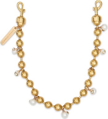 Add a touch of protective charm and personality to your favorite carry-on with this eye-catching bag charm. Suspended from a hammered-bead chain, each faux-pearl "eye" is finished with a sparkling crystal center, creating a playful yet polished design that sways with every step.