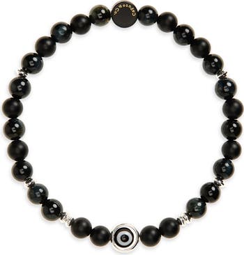 Keep the good vibes flowing with this expandable bracelet strung centered with an orbit-style evil-eye charm and strung with beads of tiger's-eye and onyx.