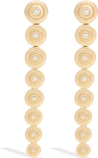 The repeating concentric circle design forming the Evolve Shoulder Duster Earrings symbolizes the cyclical process of constantly evolving to be our best selves. These earrings feature eight concentric circle components, each of a different size and each centered on a vibrant diamond.