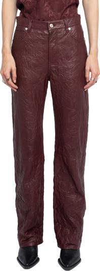Richly crinkled lambskin leather lends textural intrigue to ink-black pants kept simple in a straight-leg silhouette.
