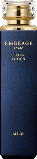 Saturate a facial cotton pad with approximately one teaspoon of EXCIA EMBEAGE Extra Lotion and gently press the hydrating formula onto your skin.