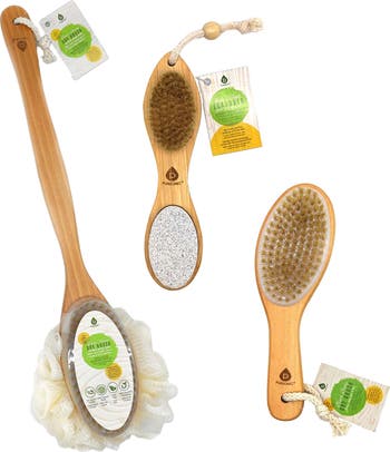 Exfoliation Essentials Kit Dual Brush, Bath Body Brush, & 4 in 1 Foot Scrubber