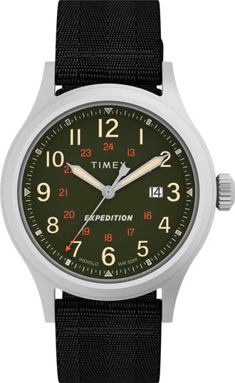 An INDIGLO® backlight and luminescent hands lend 24/7 readability to this adventure-ready watch set on a durable strap made from recycled post-consumer plastic.