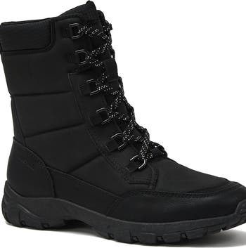 Like a trusty snow-blower that always starts on the first pull, you'll brave the bitterest winters with our new Expedition Trail Waterproof Lace-Up Snowboot for seasons to come. Built to take on winter like a pro, our classic lace-up boot is crafted with a rugged waterproof outsole, water-resistant synthetic suede upper and lined with 200-gram insulation for added warmth. Wear them to tailgate, shoveling the driveway, on long hikes or playing in the backyard with your family. Pair them with our Expedition Waterproof Down Parka, a pair of snowpants or jeans and easily take the win over winter. Our thick foam padded sock and tongue improve comfort as well. Metal D-rings making lacing a snap. Choose from two colors: Black and Dark Brown.