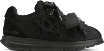Engineered for impact. The Expense sneaker features a precision-cut pony hair upper paired with a suede logo and detachable Wolfe head patch for modular styling. Double ribbon laces offer a structured fit, while a breathable mesh lining and custom-moulded sock design enhance comfort and airflow. Finished in all over black colour way, it sits on a high-performance PU and rubber outsole with integrated Naked Wolfe branding for traction and durability.