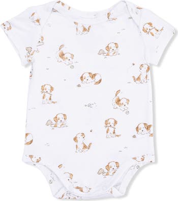 Playful puppies pattern this supersoft bodysuit with snaps between the legs for easier diaper checks and changes.