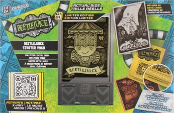 DIGIPLATE STARTER PACK: BEETLEJUICE - Step into the whimsical world of Beetlejuice with our enchanting Digiplate Collection! Each package offers a Digistand and three interchangeable licensed Digiplates. Experience the magic as Beetlejuice and other beloved characters come to life through augmented reality and a range of captivating digital experiences when scanned. Get ready to immerse yourself in the quirky and fantastical universe of Beetlejuice like never before! Join the Beetlejuice gang on their daring escapades across vibrant worlds. Each set is a treasure trove, featuring a Digistand and three interchangeable licensed Digiplates. Get ready to immerse yourself in the excitement as these plates spring to life through augmented reality and other exhilarating digital experiences when scanned. EACH STARTER PACK INCLUDES a Digistand and three interchangeable licensed plates, meticulously etched with intricate artwork from top gaming and pop culture brands. These collectible plates are not only visually stunning but also unlock digital collectibles, accessible through the Digiplate WebApp which can be accessed via the back of each plate. The digital collectibles vary in rarity and are released via gameplay at key times throughout the year, extending the product's lifespan. When scanned, the plates come to life through AR-enabled digital collections, and other exciting rewards. Digiplates seamlessly blend the physical and digital worlds, creating an immersive experience. Start your collection today.