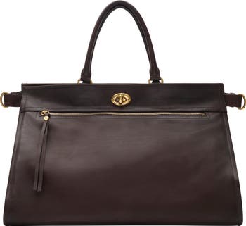 The Hampstead is a spacious new tote, crafted in Italy from smooth leather treated for a rich patina and subtle sheen. A timeless silhouette, softly structured for a lighter feel, the design is lined in tonal suede and features interior pockets woven with a light beige Burberry Check. Signature details include a check-engraved closure, exaggerated leather zip pull, and D-ring hardware inspired by the belt from our iconic trench coats. Carry by the top handles or wear on the shoulder using the strap.||Detachable strap|Top handles|Twist-lock closure|Side adjusters|Exterior zip pocket, interior zip pocket|Hand-painted edges|Brushed metal hardware|Suede lining|Comes with a dust bag