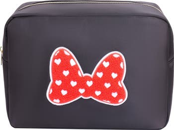 What it is: A spacious nylon bag featuring a chenille bow appliqué at the front.