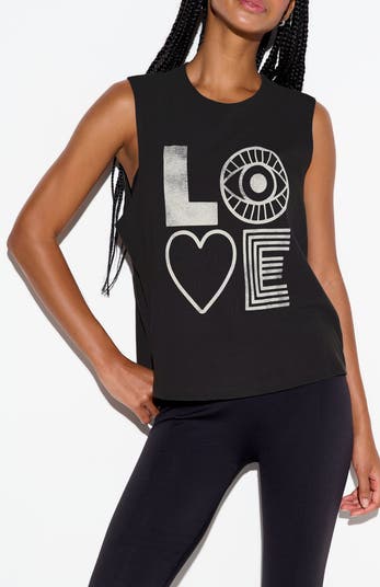 A positive graphic encourages exploring a conversation about love in the cool, breezy comfort of this tank cut from soft cotton in a swingy cropped fit.